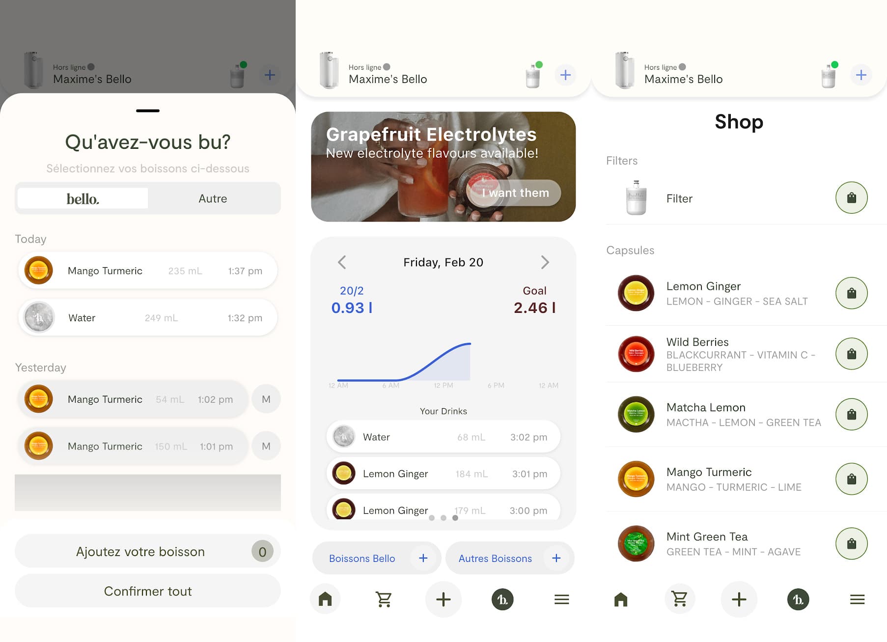 J’ai moins été impressionné par l’application mobile, cela dit, qui prends en note ce qu’on boit, et qui permet de commander de nouvelles capsules. Une bonne partie de l’application est mal traduite (ce qui est dommage pour un produit conçu au Québec), et faire le suivi de son hydratation est complexe si vous avez plusieurs personnes dans votre famille, et si vous buvez autre chose que les boissons et l’eau de Bello.