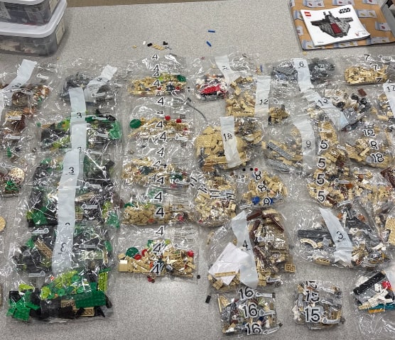 Lors de la perquisition à son domicile, les policiers auraient mis la main sur l’équivalent de deux sacs-poubelle de Lego volés.